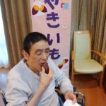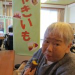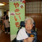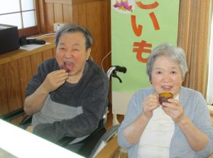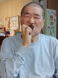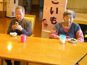 | 【冬の味覚祭】 職員が中庭で石焼き芋を焼いて、お客様に食べてもらいました。味覚祭の期間中は事務所の方にも美味しそうな匂いが漂ってきました。 |