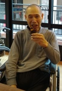 | 【誕生日会】 12月、1月生まれのお客様の誕生日をメッセージ入りの色紙とケーキでお祝いしました。祝う方、祝われる方ともに楽しまれていました♪ |